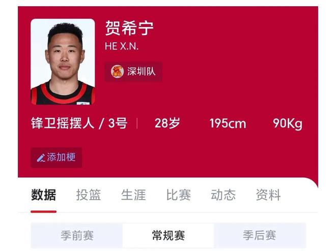 本文标签:贺希宁 cba 深圳市 浙江省 深圳男篮