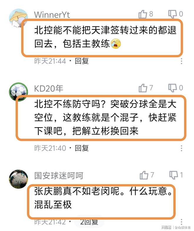 而北控队本赛季惨淡的战绩,也引来网友对少帅张庆鹏执教能力的质疑,纷纷吐槽道“天津都不要张庆鹏,北控当个宝”;“北控俱乐部总经理为什么不要格兰,要了一个没球商的张三疯,前八的球队被张三疯带到了垫底球队,还不下课,球迷心里难受”;“北控能不能把天津签转过来的都退回去,包括主教练。”;“北控不练防守吗?突破分球全是大空位,这教练就是个混子,快赶紧下课吧,把解立彬换回来。”;“张庆鹏真不如老闵呢。什么玩意。混乱至极。”。